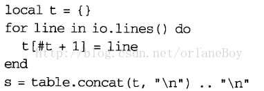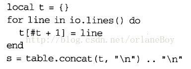 a) 在lua中,我们可以将一个table作为字符串的缓冲。其关键是使用函数table.concat,它会将给定列表中的所有字符串连接起来,并返回连接的结果