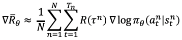 优化的目标是在策略π(s,a)的期望回报:所有的轨迹获得的回报R与对应的轨迹发生概率p的加权和,当N足够大时,可通过采样N个Episode求平均的方式近似表达。