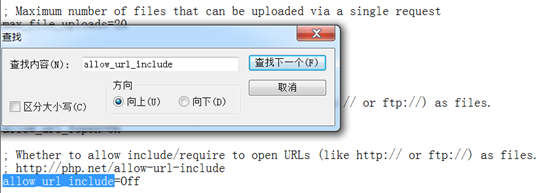 找到php.ini中的allow_url_include,如果原来为off,设置为On。