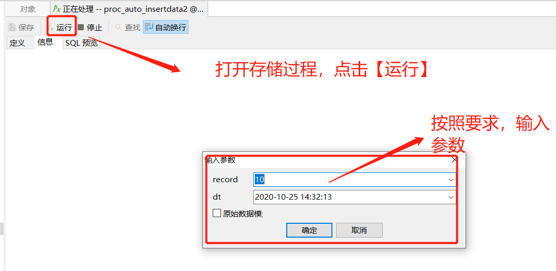 步骤二:编写存储过程: