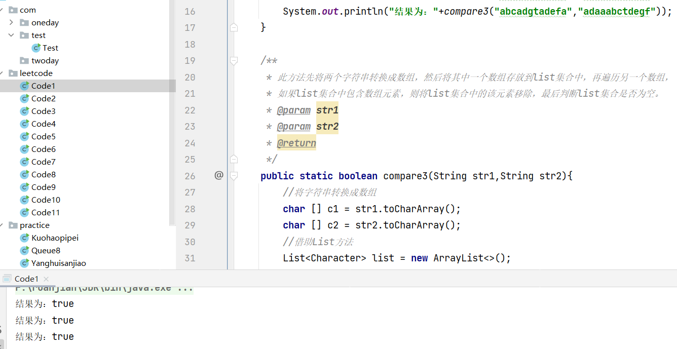 * 此方法是通过先将str1和str2转换成数组,然后调用Arrays.sort()方法进行排序,