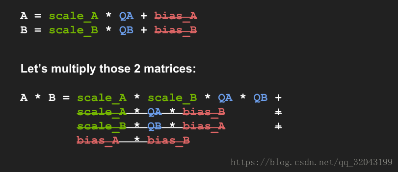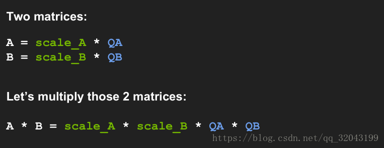 所以:Tensor Values = FP32 scale factor * int8 array,即A = scale_A * QA
