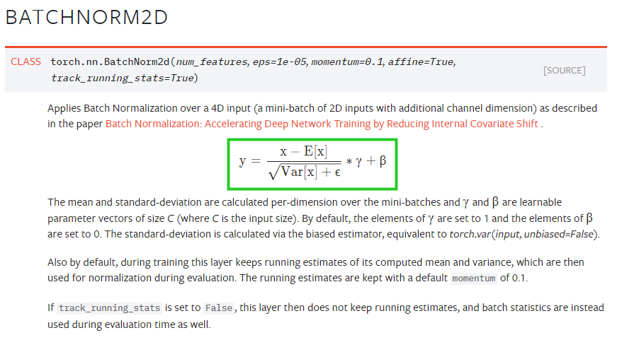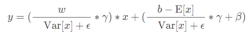 一般是conv以后接的是BN,所以conv输入x,输出y; BN的输入就是y. 把y带入BN的计算公式: