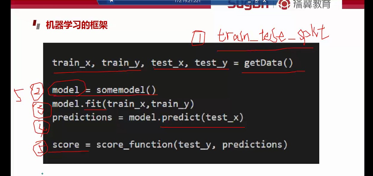 昨天开始在课堂上学习机器学习,讲解了机器学习五剑客(画个重点):[1] train_test_split [2]model [3]fit [4]predict [5]score 通过这几个关键词了解到了机器学习的流程:从建立模型到训练评价的过程。