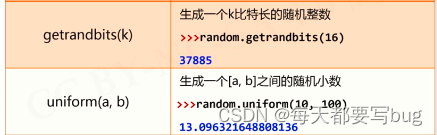 以上就是现代火龙果最近收集整理的关于Python_random库的使用的全部内容,更多相关Python_random库内容请搜索靠谱客的其他文章。