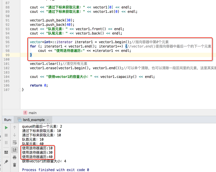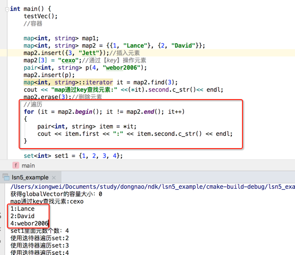 那如果要遍历里面的所有元素可以使用迭待器,具体使用如下: