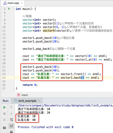 另外还可以通过函数直接获得队首和队尾的两个元素,如下: