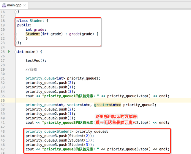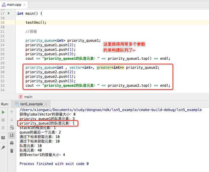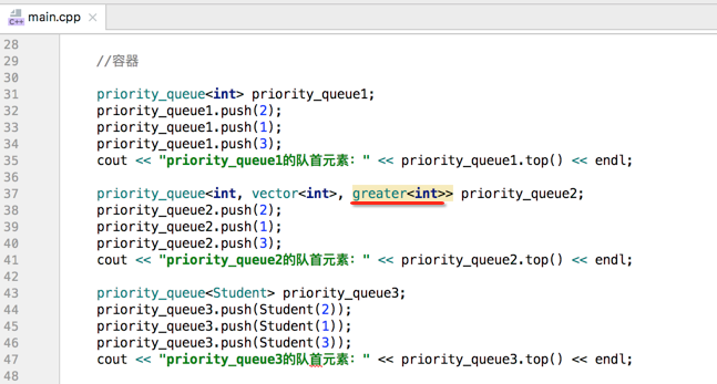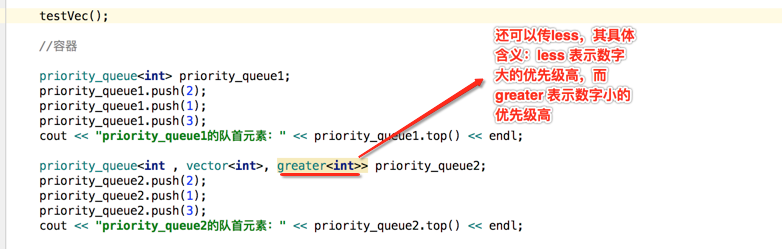也就是说明默认情况下最大的元素在队首,那如果想改变默认的元素排序将最小的放到队首呢,具体就得这么办: