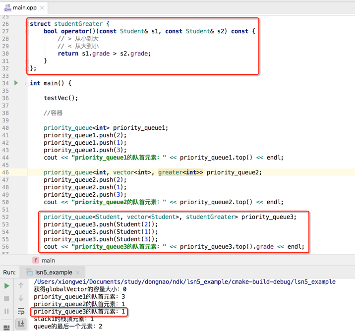 当然这个less和greater都是一个模板结构体 也可以自定义,就类似于Java中的比较器一样,这样less和greater的含义就发生变化了,如下: