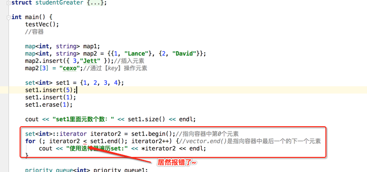 那如何遍历set呢?这里需要特别注意,有别于vector的,我们知道vector的遍历是如下: