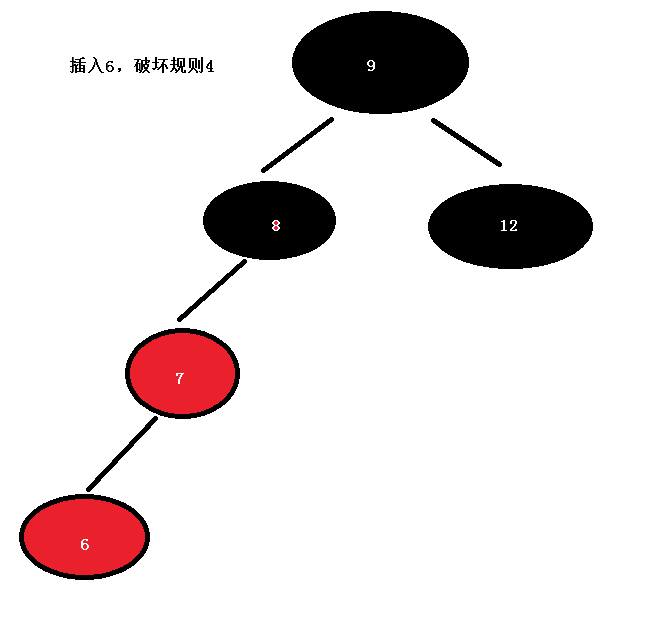 5和6都是红色,将 父节点 6 和叔父节点 8 绘为黑色:
