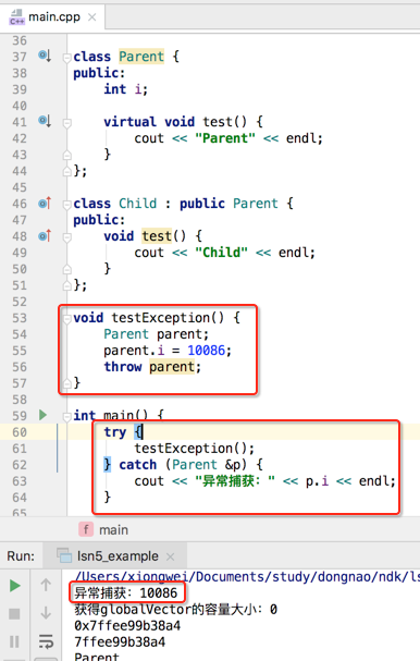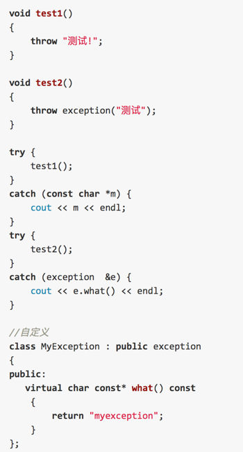 另外,相比java,c++中抛异常时可以随便抛一个对象,不一定是非要继承至exception类的,如下: