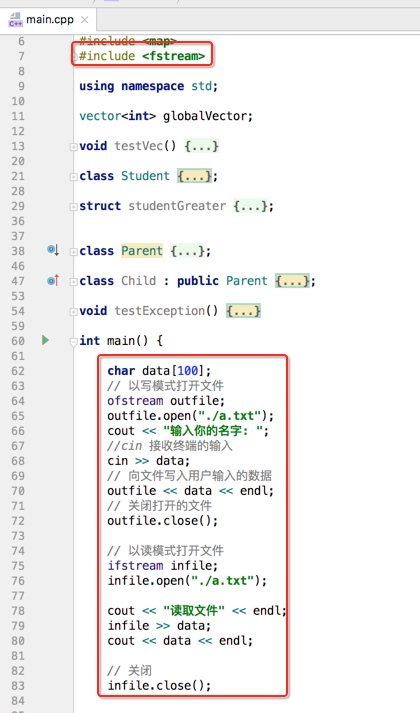 | fstream | 文件流,且同时具有 ofstream 和 ifstream 两种功能。 |