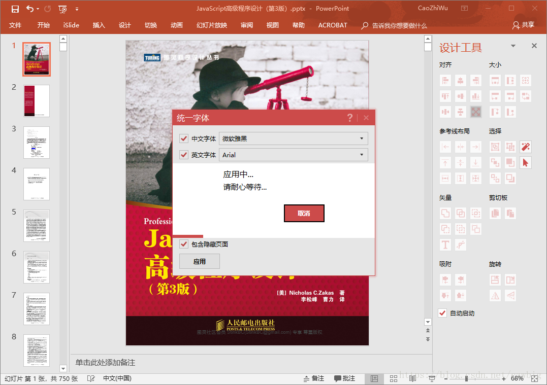 2,在ppt里面修改成自己需要的字体样式,这一步建议使用ppt插件islide一键操作,如下图