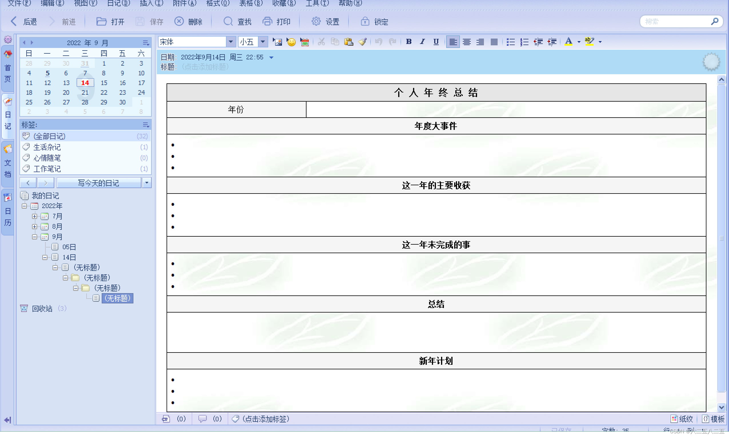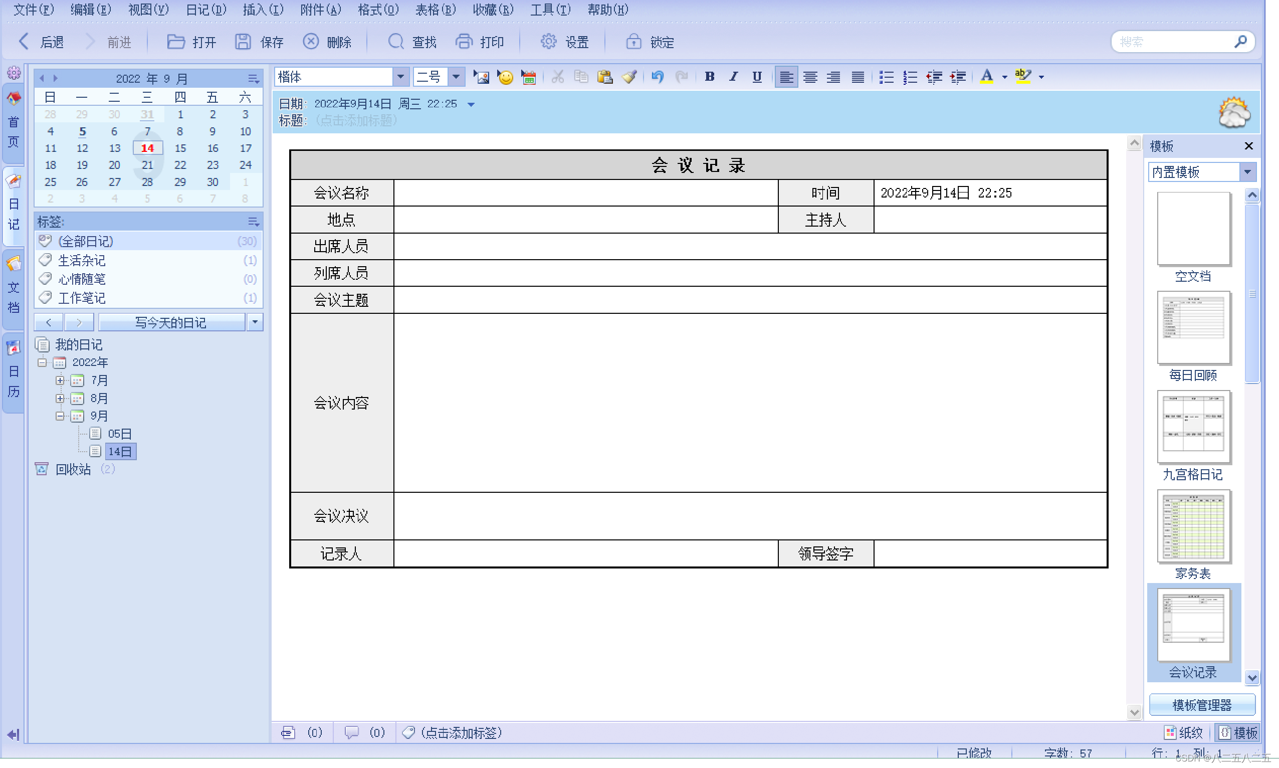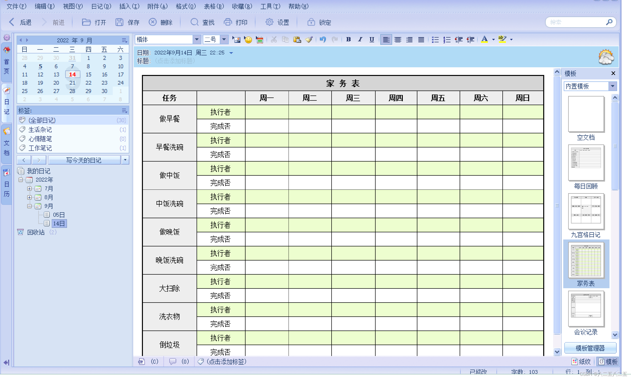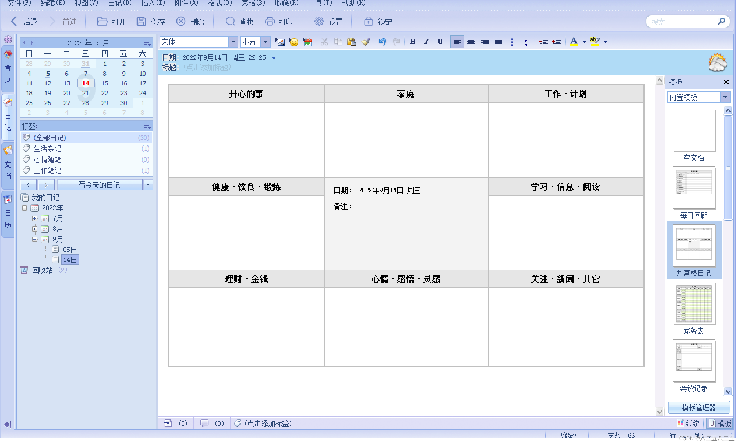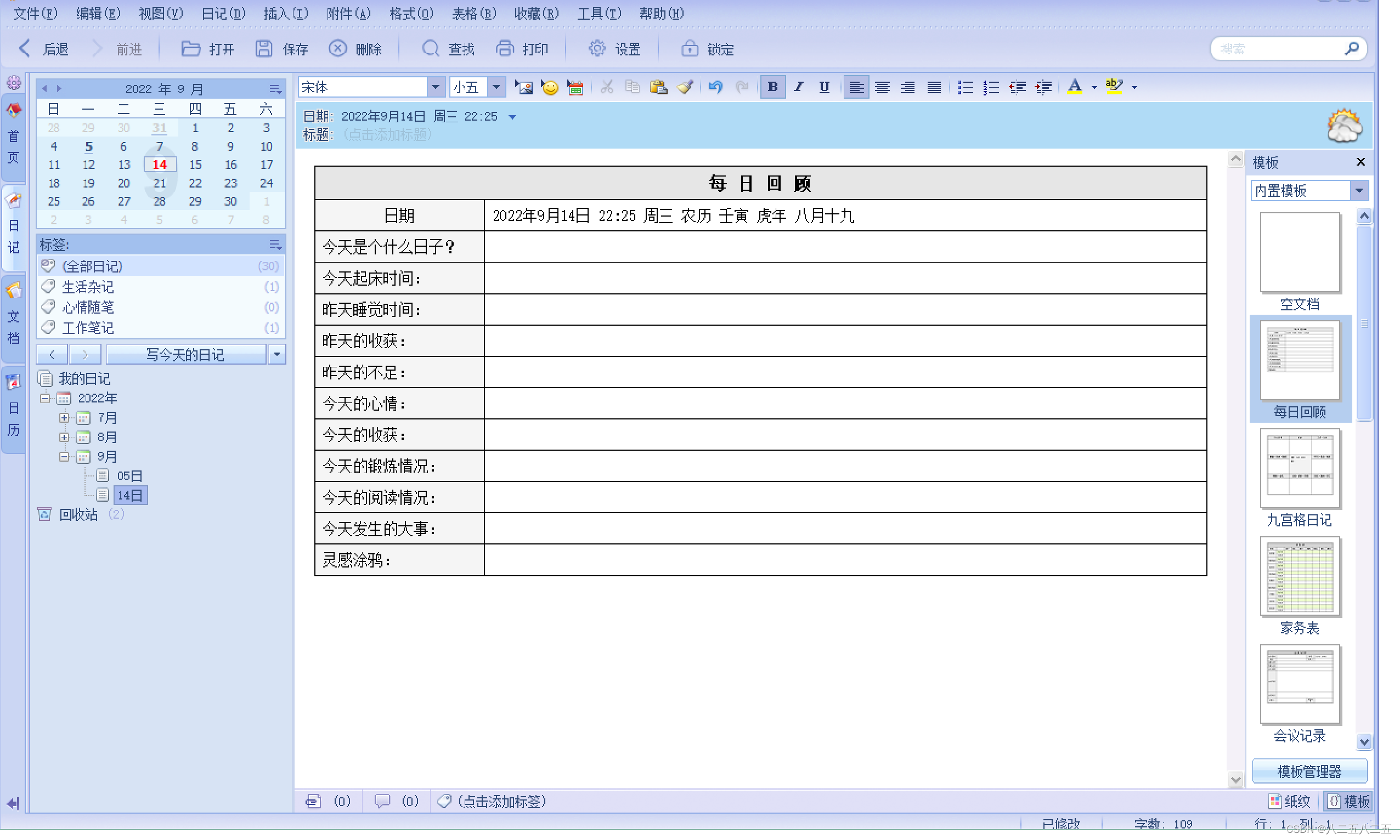 ·支持日记模板功能,并预置常用模板;