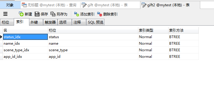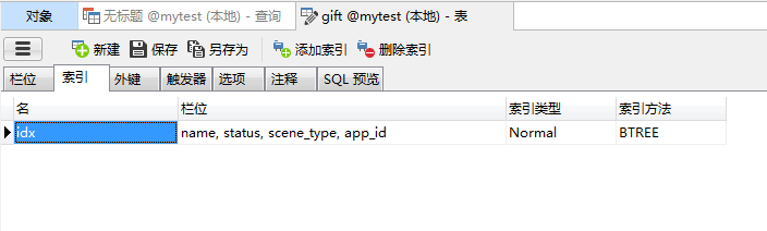第一张表gift和索引为联合索引,如图: