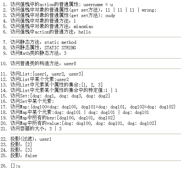 <li>访问值栈中对象的普通属性(get set方法):<s:property value="user.age"/> | <s:property value="user['age']"/> | <s:property value="user["age"]"/> | wrong: <%--<s:property value="user[age]"/>--%></li>