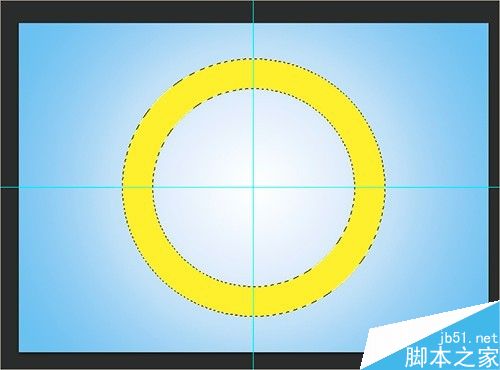 (2)点击工具箱中的椭圆选框工具,以画布的中心点为起点画出大圆。
