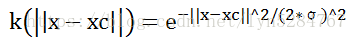 其中,xc为中心点坐标,x为待分类的坐标,||x-xc||为欧几里得距离,σ为可调的宽度参数。