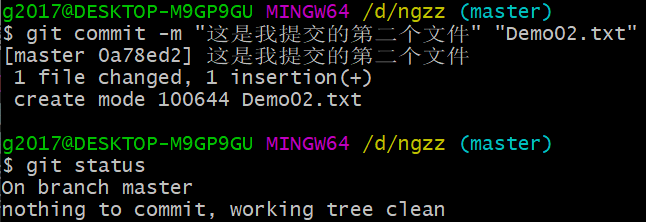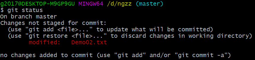 将Demo02.txt通过git add命令提交至暂存区后