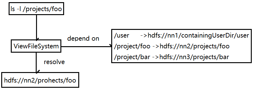 比如:挂载的信息为 /project/viewFsTmp -> hdfs://nn1/projects/Tmp