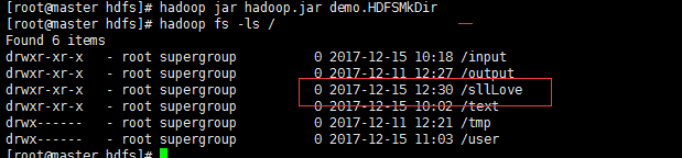 hadoop jar hadoop.jar demo.HDFSMKDir