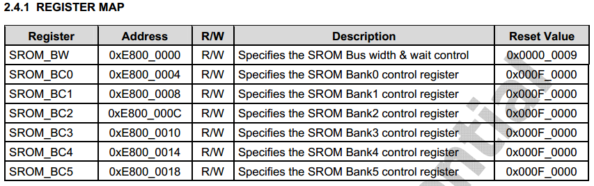 (1)SROM_BW寄存器,对SROM控制器进行配置