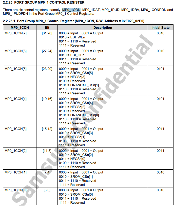 (3)MP0_1CON寄存器,配置SROM控制器的GPIO的片选功能