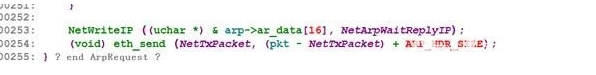 PingSend函数前面在构建数据,最后使用ArpRequest函数(在netnet.c中),将ARP包发送。这是因为ping使用的是ARP包。