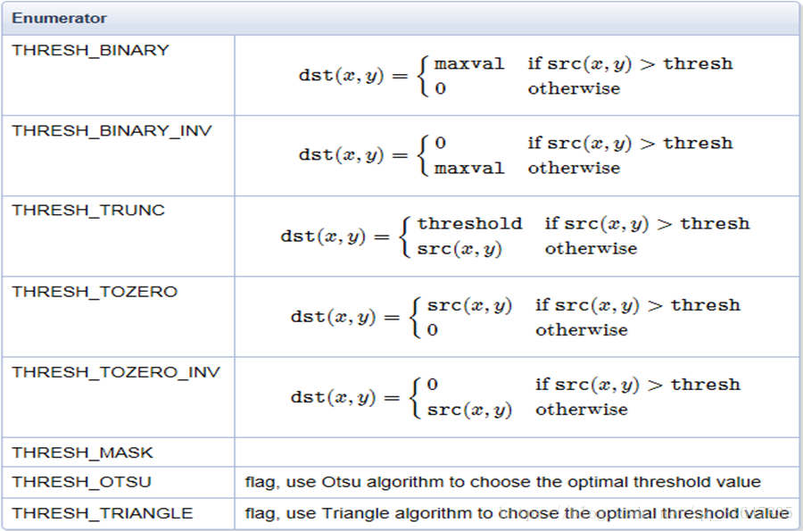 以上就是紧张花瓣最近收集整理的关于opencv笔记十五(二值化THRESHOLD)基本原理:API: 的全部内容,更多相关opencv笔记十五(二值化THRESHOLD)基本原理内容请搜索靠谱客的其他文章。