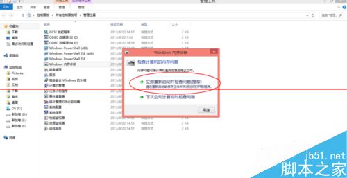 6、打开后会弹出一个对话框,在这里小编推荐大家选择“立即重新启动并检查问题”。