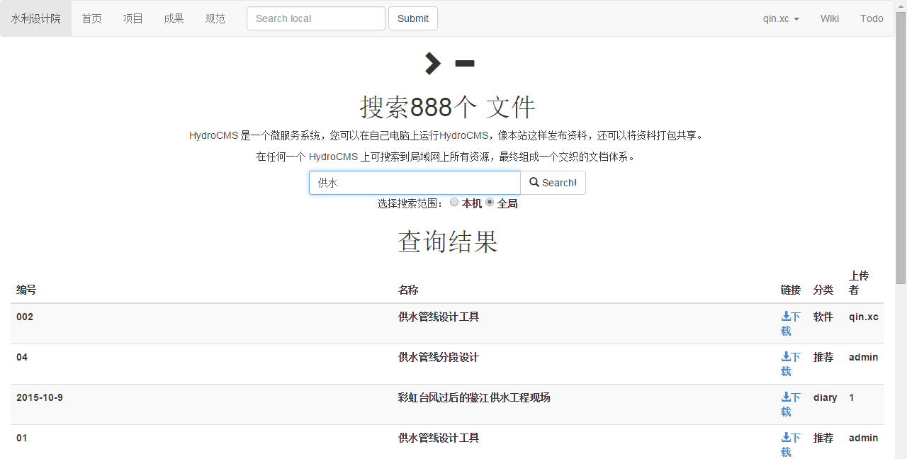 6、全局搜索功能:可搜索到每个运行cms系统上的成果。