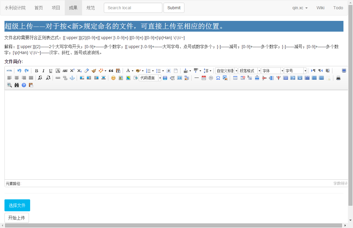 12、快捷上传:电子文件命名符合企业标准后(如SL2014BT-520-45阀井结构布置图.dwg),可任意上传,系统根据文件名识别具体位置:项目——阶段——文档类型——专业