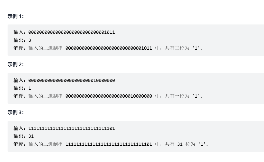 当我拿到这道题目的时候,我首先想到的是通过将他拆分为数组,一个一个的循环判断来做,这样的作法是没有问题的,但是可能是平台的隐藏要求?还是什么的,这种方法得出来的结果在vs code上运行的和在力扣上运行的是完全不一样的,我盲目猜测,也许是他将这个数当成了有符号数?原因我还没有找到,找到的朋友可以私信一下我(万分感谢)