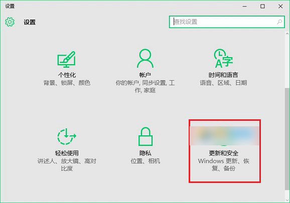 2、进入Win10设置面板后,点击进入最底部的「更新和安全」,如图。