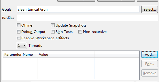 这样当我们想运行这个maven项目的时候只要在项目上右键点击-run as-maven build在Goals中输入命令就可以通过maven-tomcat插件运行项目了而不必使用本地的tomcat