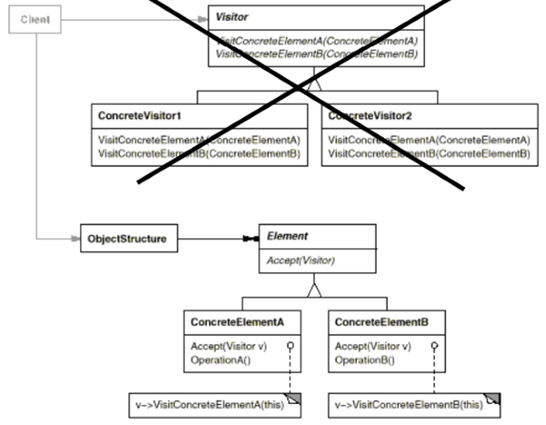 - 重构阻力:Visitor定义取决于其运行的客户端类集。