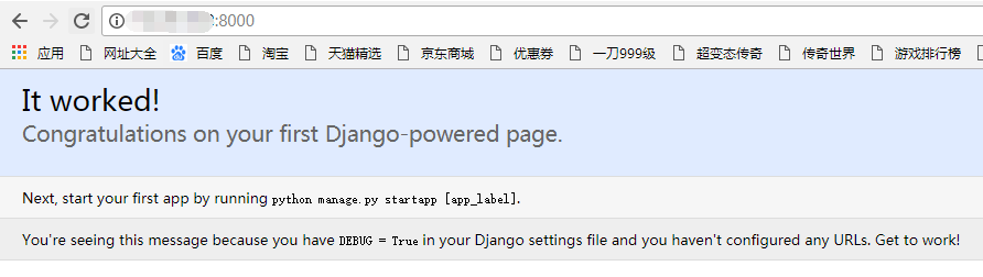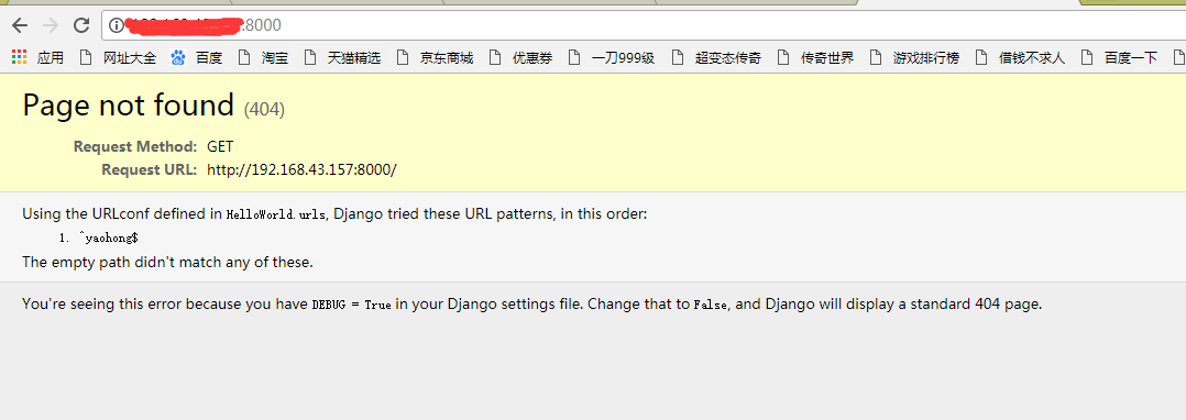 2:如果出现“dango error:DisallowedHost: Invalid HTTP_HOST header: ''. You may need to add u'' to ALLOWED_HOST”错误,就修改settings.py文件中