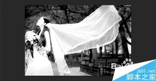 步骤1-步骤3不变,步骤4:使用减淡工具和画笔工具的配合把人物部分涂抹白,婚纱部分不动;步骤5:Ctrl+鼠标左键载入选取;步骤7-步骤10不变。(黑色部分是不保留的,半黑不白的抠出来是透明效果)