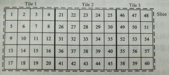 每个Tile包含整数个CTU,其可以独立编码,在编码时,每一个Tile包含的CTU按照扫描顺序进行编码。划分Tile的主要目的是增强并行处理能力而不引入新的错误扩散。