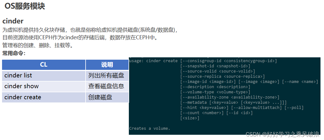 | 存储 | Cinder | 向虚机提供可用于持久存储的存储服务; |