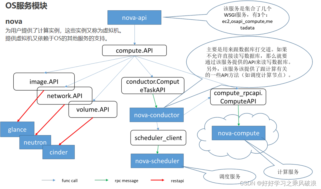 | 计算 | Nova | 按需分派并管理虚机; |
