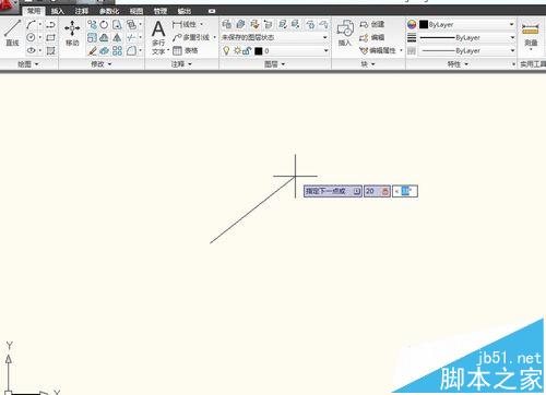 2、前面教程讲过,直线快捷键L回车后,使用直线画线功能,然后在第一个空中输入长度数值,然后用【Shift+<】就可以跳到第二个输入角度,输入角度数值后,敲击空格和回车就画出一条带极坐标的线条出来。