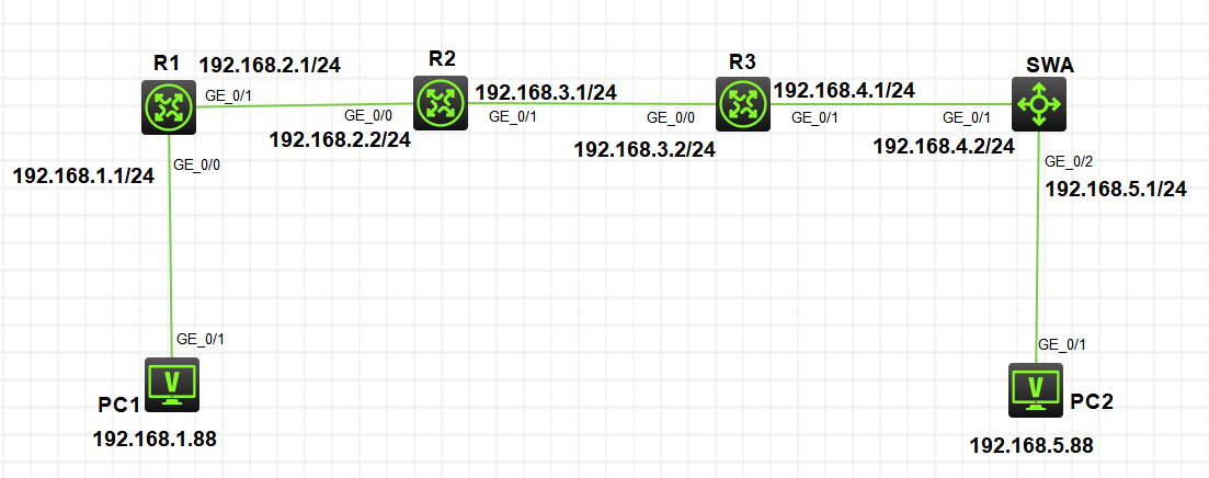 | R1 | GE_0/1 | 192.168.2.1/24 |