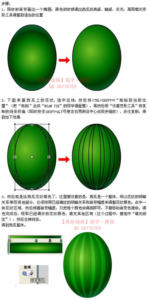 本教程向大家介绍如何利用Flash绘制切开的西瓜和咸鸡蛋过程,绘制方法不是很难,作者不仅详细介绍了绘制过程,同时也向我们讲解了Flash渐变绘画技术,教程非常实用,推荐过来,与大家一起学习,希望对大家有所帮助!
