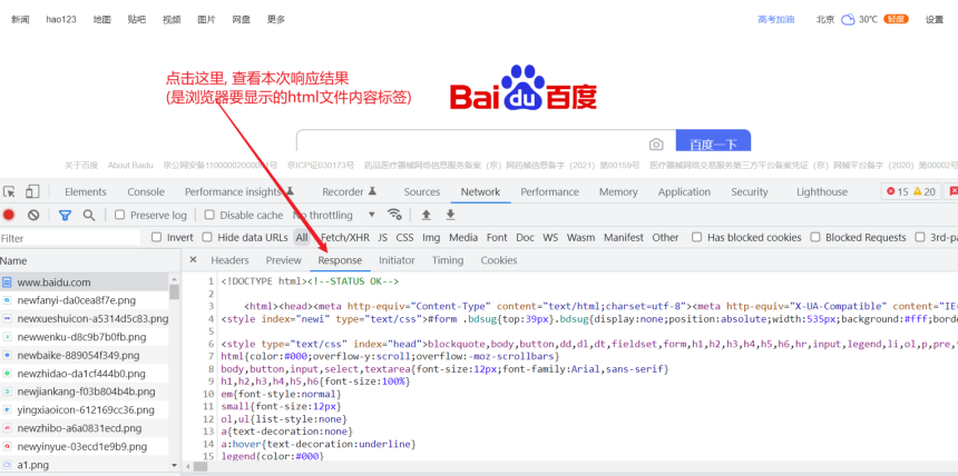 大家看看访问百度的首页, 返回了哪几种类型的资源呢?