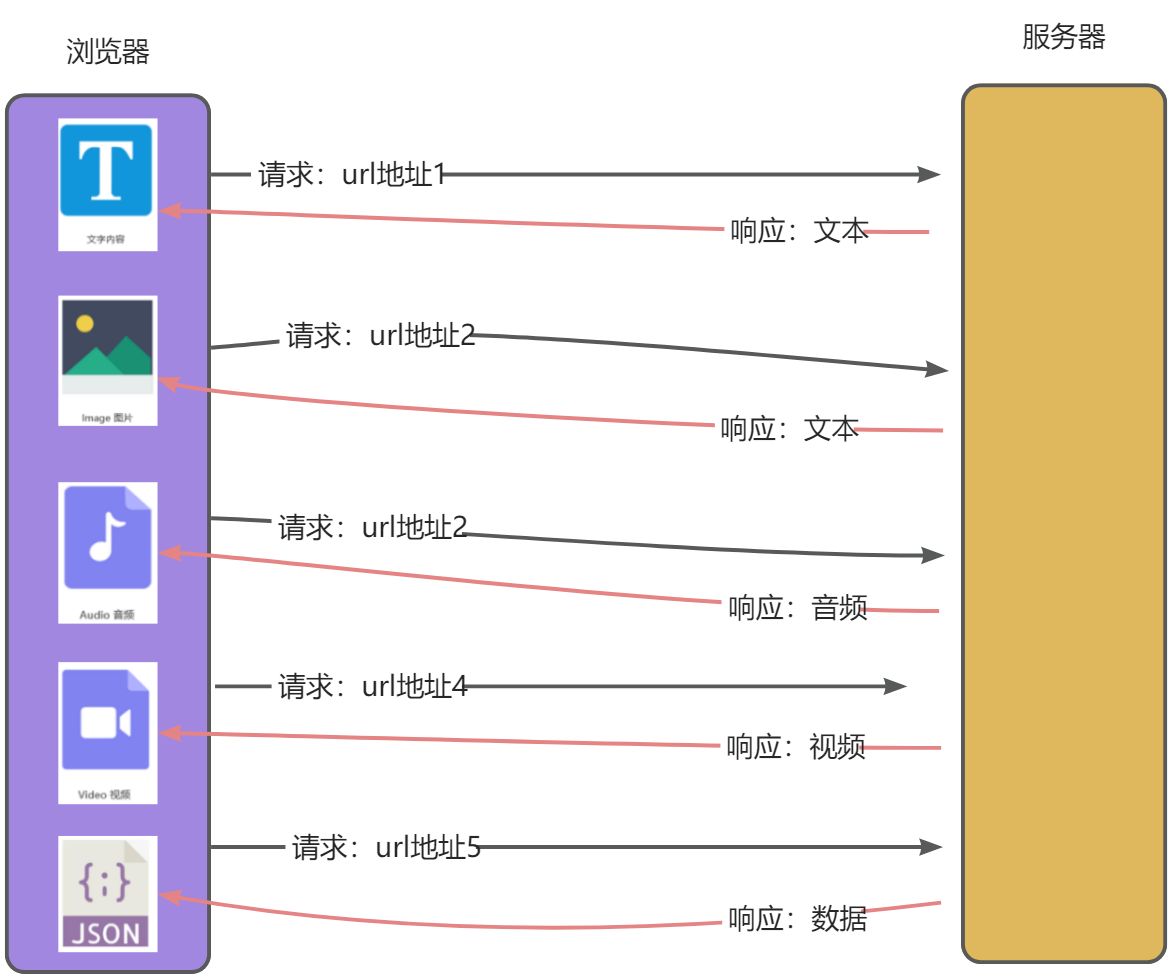 - 大家记住: 一次请求对应一次响应, 响应回来的内容浏览器会进行解析