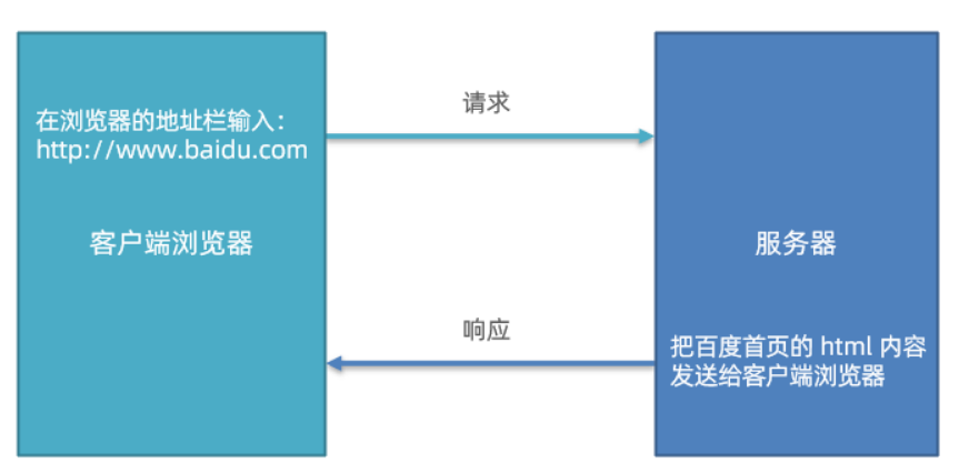 - 响应: 服务器, 通过网络给浏览器返回资源的过程, 叫做"响应"