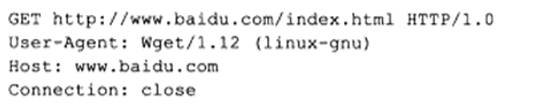 第二行:“User-Agent: Wget/1.12 (linux-gnu)”,表示客户端使用的程序是wget