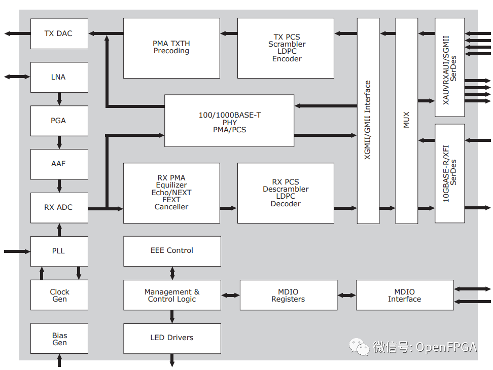 通过几个PHY片的原理框图可以总结出下面的简化PHY片的原理框图。